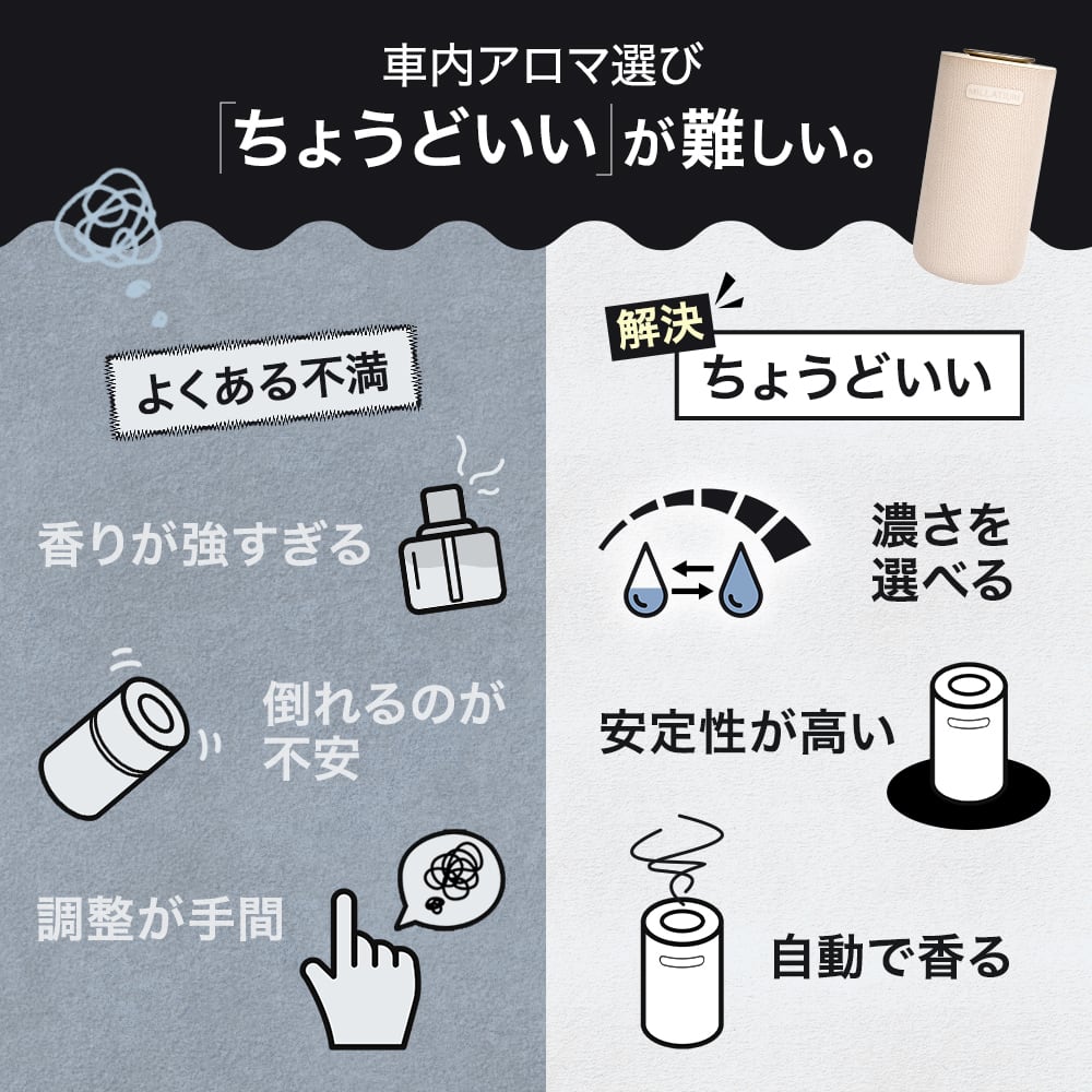 【上質感あふれるデザインとエコな発想】 ミニマルで洗練されたデザインが、車内やインテリアに美しく馴染みます。水を使わないエコ仕様で、無駄を減らしながら上質なリラックス空間を演出。スタイリッシュかつ持続可能なライフスタイルに寄り添う芳香デバイスです。